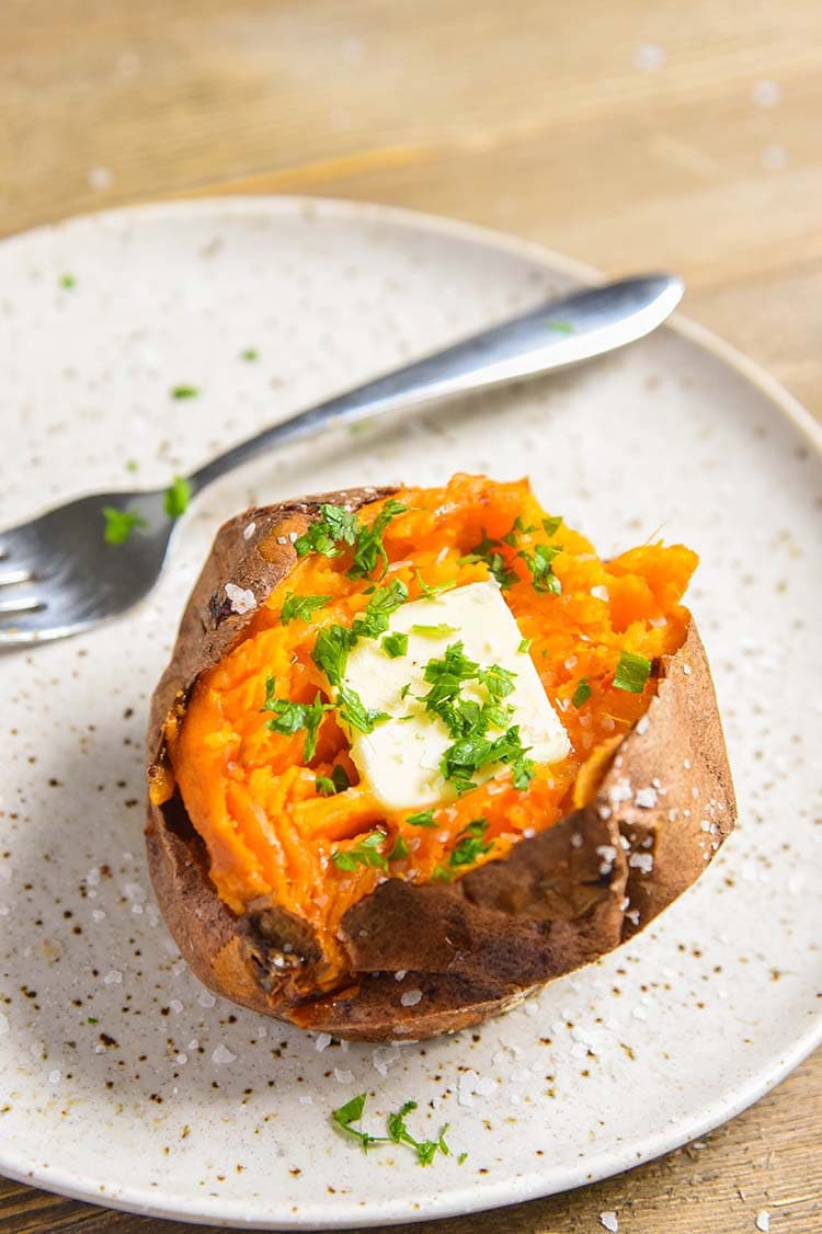 Our áir Fryer Báked Sweet Potáto recipe results in á sweet potáto báked to perfection! The best áir Fryer Báked Sweet Potáto ever!!